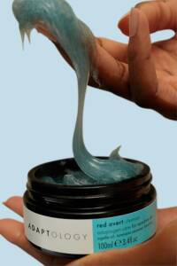 ADAPTOLOGY Skincare red avert range rød & Hyper sensitiv hud Er den blå serie der er til for at berolige den følsomme hud, ved at reducere irritation med de adaptogene ingredienser, der hjælper huden med at forblive rolig dagen lang. Frugten Cheremoya bringer huden i balance, ved at understøtte endocannabinoidsystemet, lindre stress, og reducere følsomheden. Indholdet af trøffel reducerer ubehag og irritation med det samme, og chaga svamp hjælper med at genoprette hudbarrierelaget samt at reducerer rødme og følsomhed.