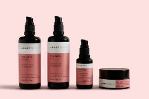 ADAPTOLOGY Skincare time warp range – anti-ageing Er den lyserøde serie der hjælper huden med at genvinde udstråling og elasticitet gennem det adaptogene, økologiske og plantebaserede indhold. I serien finder du Antarktiske glykoproteiner, der reducerer rynker og rynkedybden. Bio retinol fra Sydamerikansk brøndsel der naturligt reducerer rynkedybden, alderspletter, pigmentering og øger kollagenprocessen. Urten Ashwagandha beskytter imod oxidativ stress forårsaget af UV-lys, blåt lys og miljøforurenende stoffer.